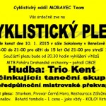 Cyklistický oddíl MORAVEC Team Vás srdečně zve na Cyklistický ples, který se bude konat dne 10. 1. 2015 v sále Sokolovny v Benešově u Boskovic. Od 18:00 do 21:00 pro děti do 15 let Od 21:00 pro straší 15 let Součástí plesu bude od 20.30 hodin vyhlášení vítězů Poháru Drahanské vrchoviny v pořadí OBCE. Listina vyhlašovaných …