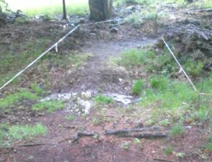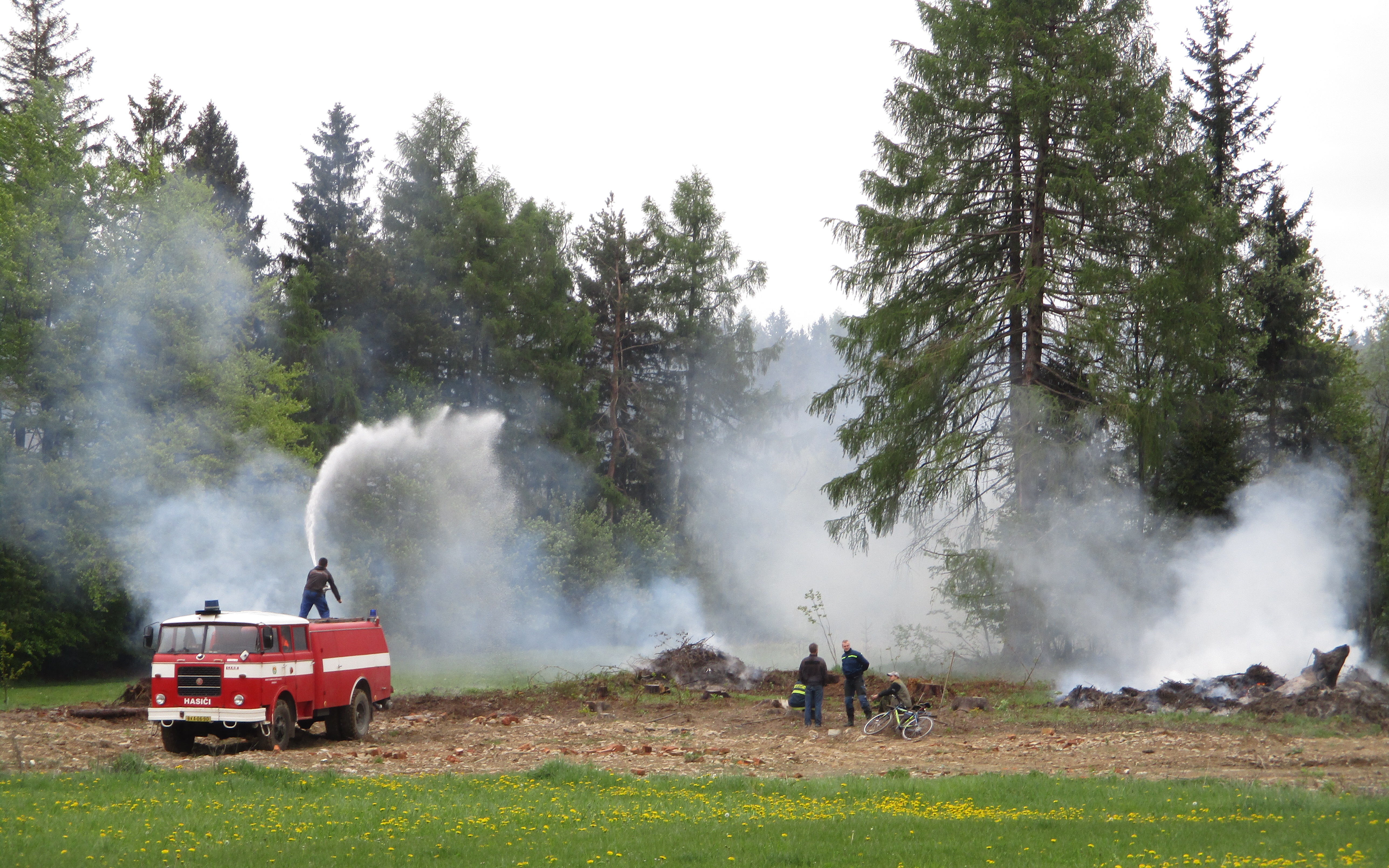 V úterý, 14. května kromě pokosu trávy na tratích kategorií do 12-ti let (mimo les), došlo i k vyčištění těchto okruhů a navíc se i přes soustavný drobný déšť podařilo „vymlíkovat“ asi 0,5 km hlavního okruhu – od vjezdu do lesa až po odjezd z „Pechova esíčka“ směrem k „Dukelskému průsmyku“.