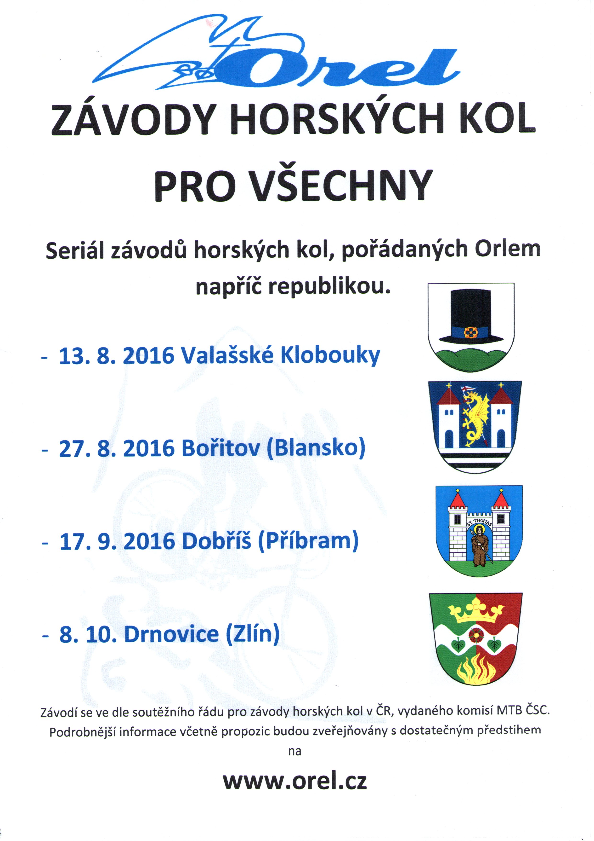 Jedním ze pěti TOP závodů Poháru Drahanské vrchoviny (tzv. závody GRAND SLAM, patří sem Bořitov, Okrouhlá, Valchov, Benešov a Spešov) je už po léta právě závod v Bořitově. Jako první z pořádajících obcí si právě Bořitovští ústy Jirky Sedláčka již určili v jubilejním 15. ročníku pevný termín: pojede se zde 27. srpna 2016 a po letech bude závod opět figurovat ve dvou seriálech: kromě Poháru Drahanské vrchoviny to bude ještě v rámci Seriálu závodů horských kol, pořádaných Orlem napříč republikou. Nová bikerská pořadatelská aktivita (zde se dozvíte více: Orel napříč republikou) se bude sestávat ze čtyř závodů a kromě Bořitova pohostí závodníky také Valašské Klobouky, Dobříš a Drnovice (Zlín). Zpět ale k PDV 2016: kromě pevného bořitovského termínu jsou předběžně stanoveny již i termíny závodů v Okrouhlé, Valchově (budou opět pořádat „Zlatou Trojkorunu“ tj. MTB maraton Valchovský Drtič, MTB časovku do vrchu Valchovský Kameňák a klasické MTB XCO), Kořenci, Benešově a Spešově. O nich Vám více prozradím ve Vánočním příspěvku. Zdarec MORAVEC, Petr Koudelka.