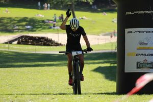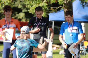 A pak přišlo další parádní číslo „Grand Final“ – závod tříčlenných štafet. Už si ani nevzpomenu, kolik jich šlo do boje, bylo jich ale, tuším, čtrnáct..? A TOP Favorit byl jasný: domácí první tým ACT leraK. Tvrdá konkurence ale ukula zajímavé pikle… Kombinovaná štafeta Nutrend Specialized SKR Racing / Cyklo Team MXM Hulín šla do boje v sestavě Jan Zatloukal (Nutrend Specialized SKR Racing), Adéla Vodicová (Cyklo Team MXM Hulín) a Veronika Šafářová (Nutrend Specialized SKR Racing). A kdo ví, kdo stanovil pořadí startů brce a borek této kombinované formace do závodu? Možná sám Viktor Zapletal? Nebo Milan Šafář? Nebo si to mezi sebou „upekli“ samotní rajdři? Každopádně to bylo postaveno vysoce odborně. Štafetu rozjel Honza Zatloukal a podle očekávání ji předal Adélce na vedoucí pozici s velkým náskokem. Šikovná a nejmladší z tria, Adéla Vodicová sice z náskoku něco ztratila, ale předala ji Veronice Šafářové stále s dostatečným náskokem. Ale: finišmenem „leraků“ byl „eliťák“ Tadeáš Zouhar… A došlo ke skutečnému „honu na lišku“… Tadeáš, podle očekávání, dotahoval Veroniku, ale přes veškerou snahu se mu ji předjet nakonec nepodařilo! Byla to parádní bitva do posledního metru, ve které Verča proťala cílovou čáru sice velmi těsně, ale poznatelně dříve! A stala se tak se dvěma vítězstvími ten den nepsanou princeznou Velké ceny Blanska!